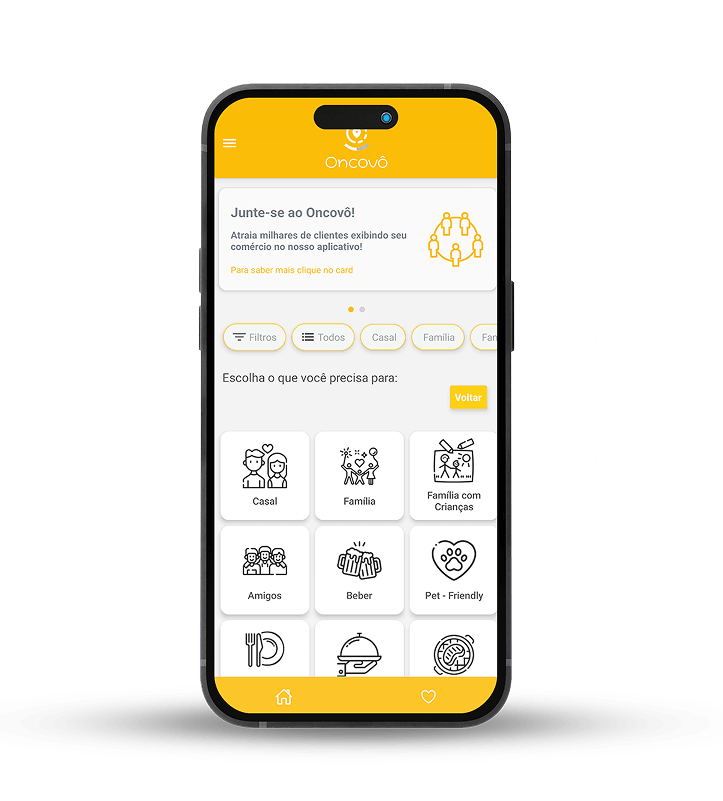No ONCOVÔ, os usuários utilizam filtros inteligentes para buscar experiências. Se o que você oferece está alinhado ao que eles procuram, é exatamente aí que seu negócio aparece.